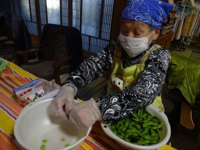 ちくわをハサミで切ったり、枝豆の殻剥き、