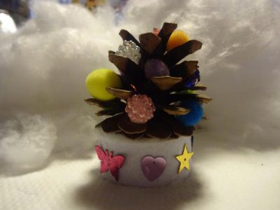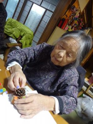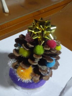 まつぼっくりを使ってクリスマスツリー作り