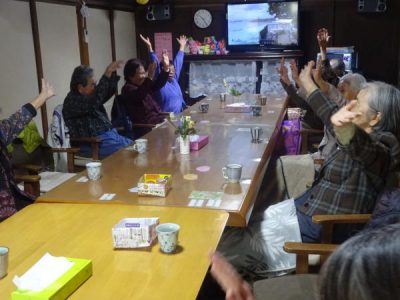 合唱の後、音楽にあわせての体操