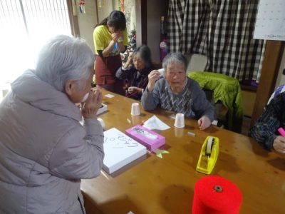 完成した糸電話で、お隣様同士で楽しまれていました