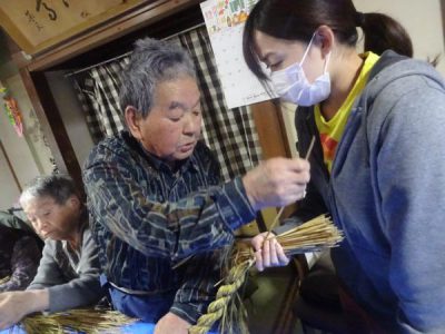 先生の説明を受けながら、しめ縄を作っていきます