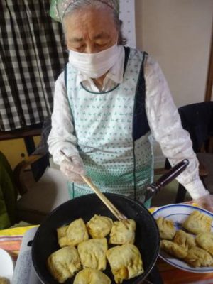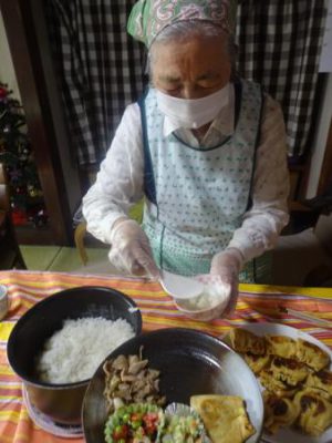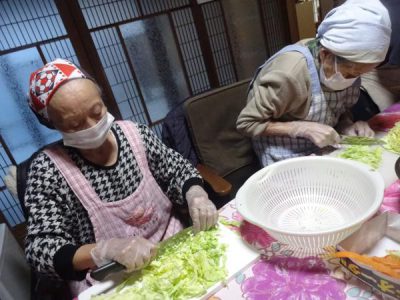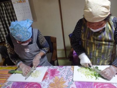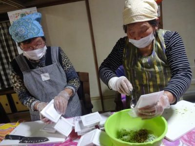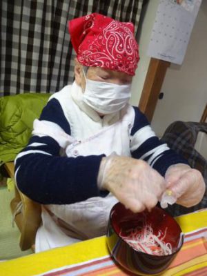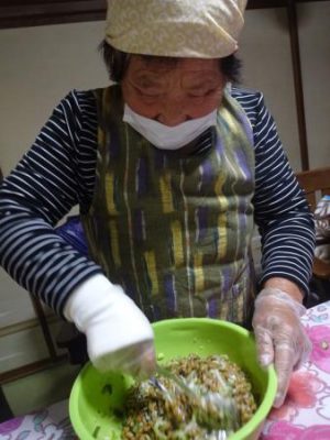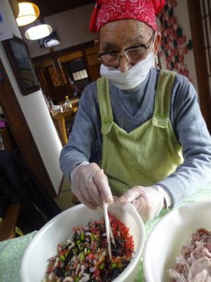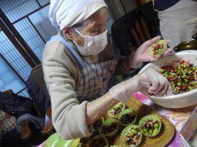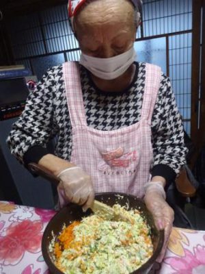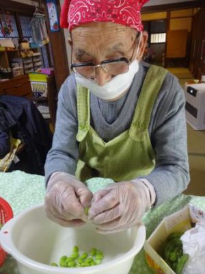 枝豆の殻を剥いたり カニカマをちぎったり・・・