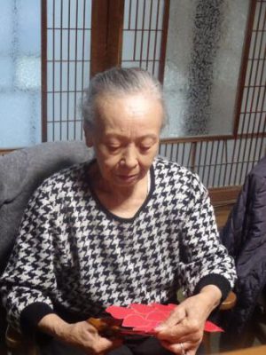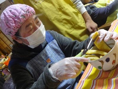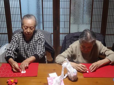 コチラの母達は、 ツ バ キ の 花 び ら 作 り