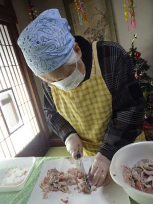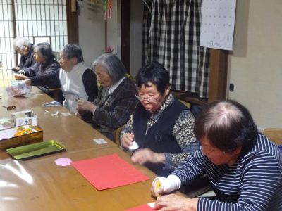 午 後 は 、 ツ バ キ の 吊 る し 作 り