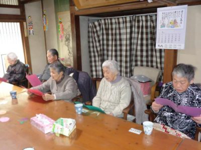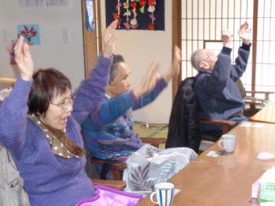 ぼけたらあかんの唱和、合唱、歌謡体操を