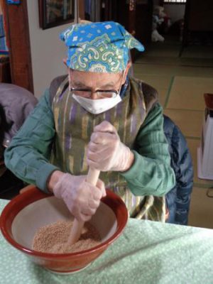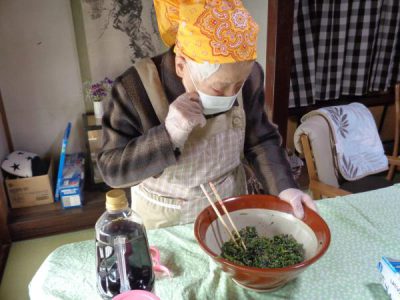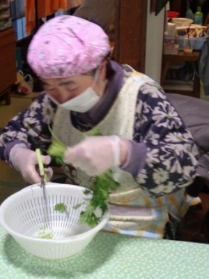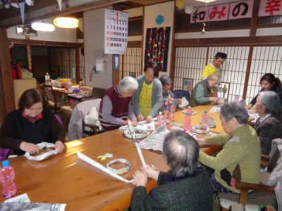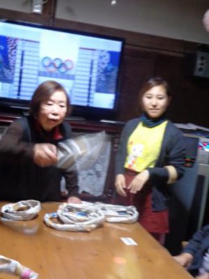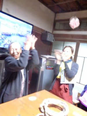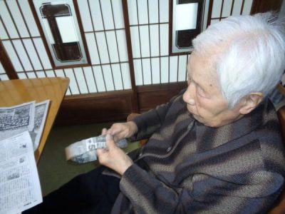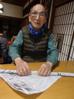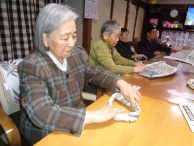 父母達 真剣な面持ちで 新聞紙を クルクル クルクル