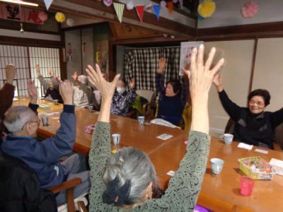 ぼけたらあかんの唱和、合唱、歌謡体操を行い
