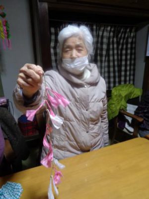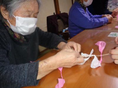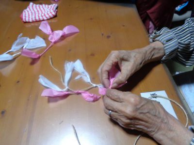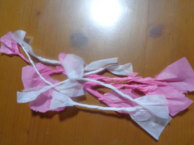 まずはお花紙と麻ひも、塗れた布巾を用意します