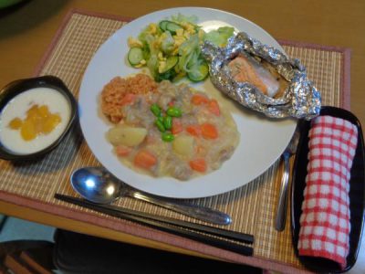鮭ときのこ(舞茸、えのき、エリンギ)のホイル焼き