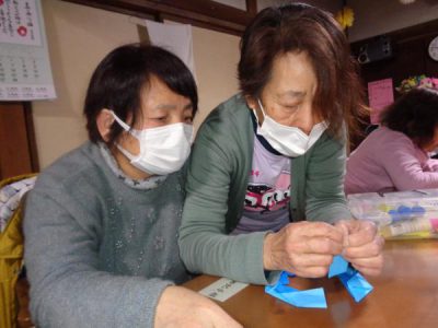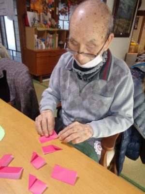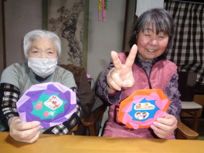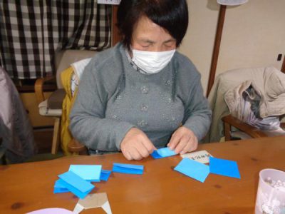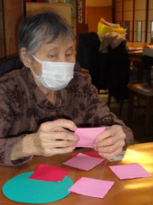 まずは、同じ色の折り紙を2枚、選んでいただき