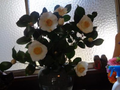 一昨日のブログに載せた白椿の花がたくさん開きました