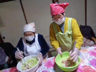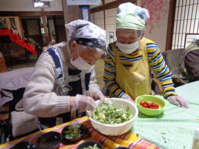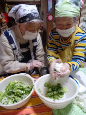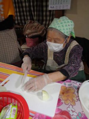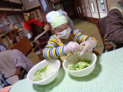 こちらでは、しょうがをすったり、レタスをちぎったり
