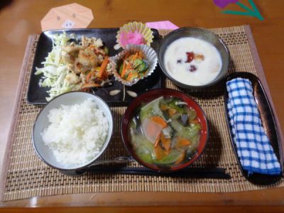 レストラン豆乳バナナヨーグルト いちごジャムのせ  でしたうまい! (顔)