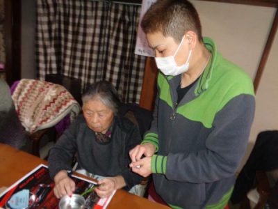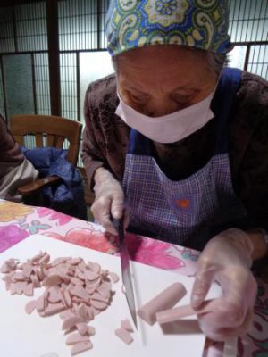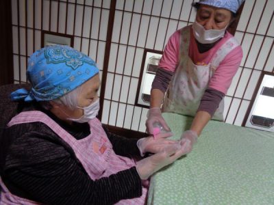 エプロン・三角巾・手袋・マスクで身支度を整え