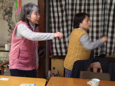 歌謡体操で歌を歌いながら動かすことによって
