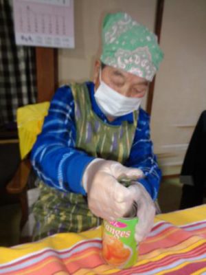 力もちの父に缶づめを開けてもらいます