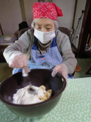 早速、エプロン、頭巾に着替えて