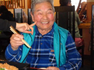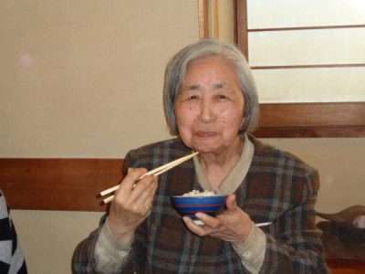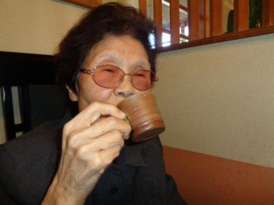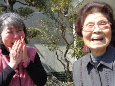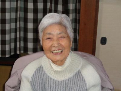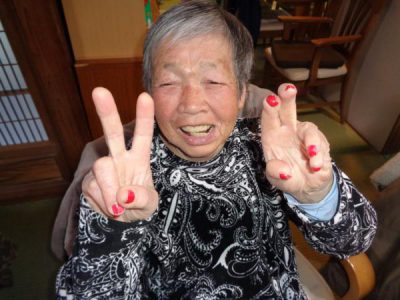 カメラを向けると満面な笑みの母