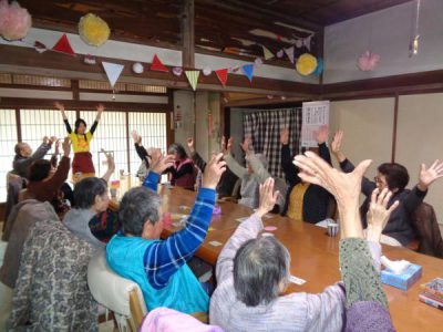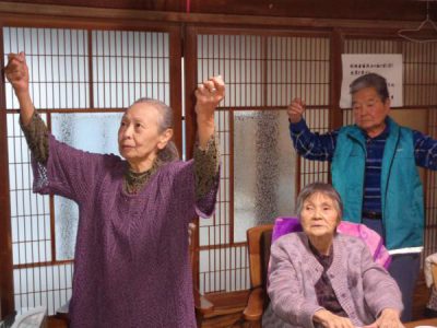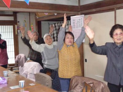 歌謡体操では、TV画面を見ながらしっかりと身体を動かしました