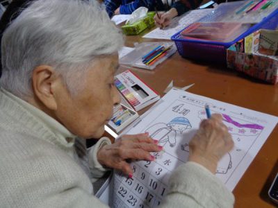 午後からはまったりと皆で大好きなカレンダー塗り絵