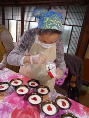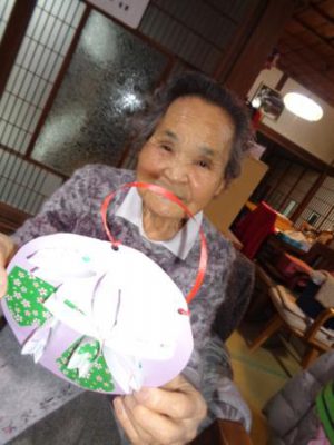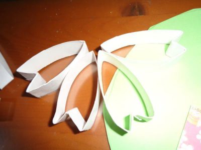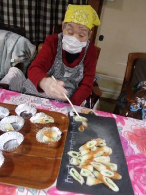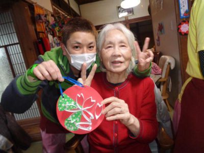 午後はトイレットペーパーの芯を使って桜の花びら作り