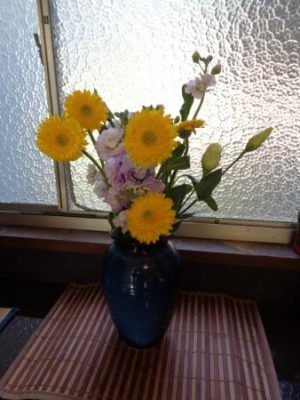 和みの玄関にはユリ・ガーベラを飾って庵内を華やかに
