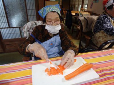 包丁やハサミを使って食材を切って下さいました