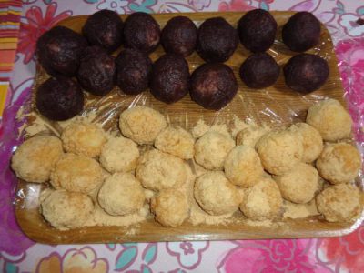 まるめたもちもちごはんにたっぷりきな粉をつけました