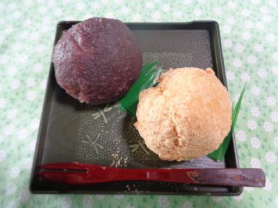あんこ・きなこの2種類のぼたもちを作りますよ