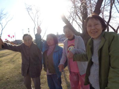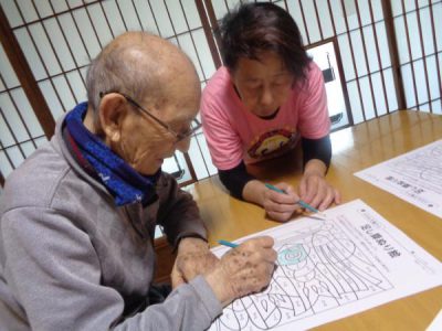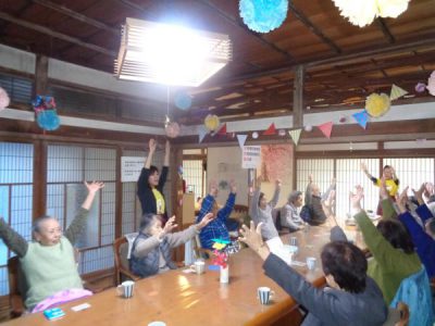 今日は黒田節と柔の曲に合わせて歌いながらの体操