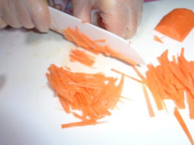 包丁・ハサミを使い手際よく野菜を切っていく母達