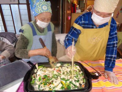 今日も皆さんのご協力によりおいしい昼食が完成しました