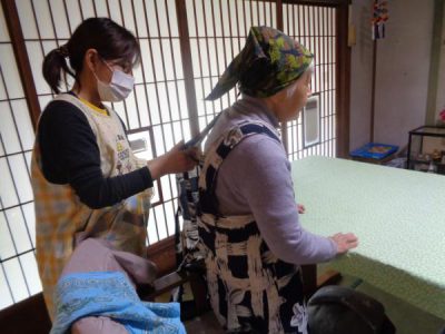 やりづらい後ろ側はスタッフもお手伝い