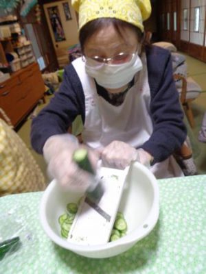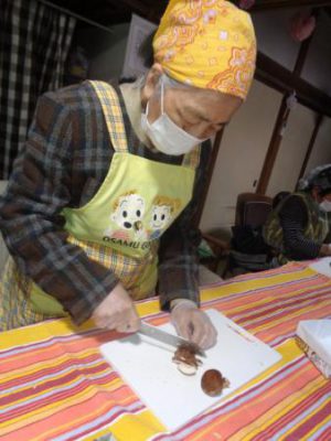 野菜、きのこ類が母達の素晴らしい包丁さばきに