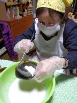 さっそく、エプロン・頭巾に身支度を整えます