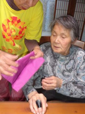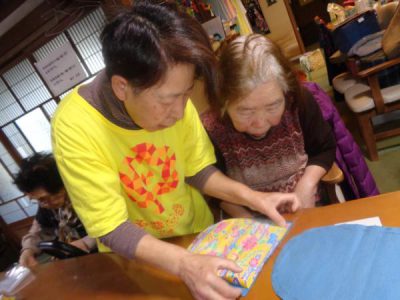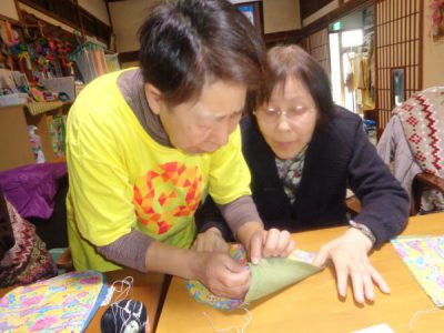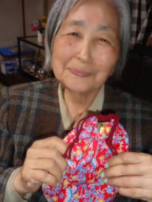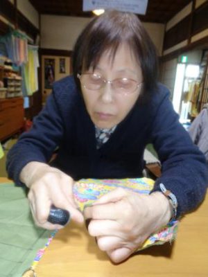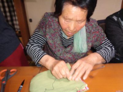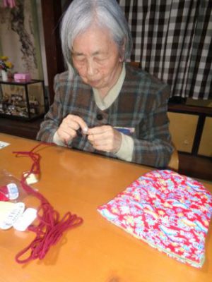 午後は先週に引き続き、巾着作りです