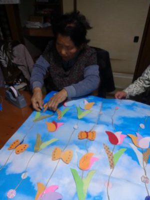 午前中はチューリップの壁画制作です