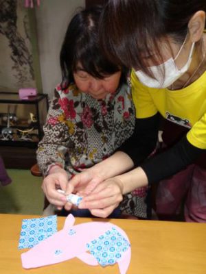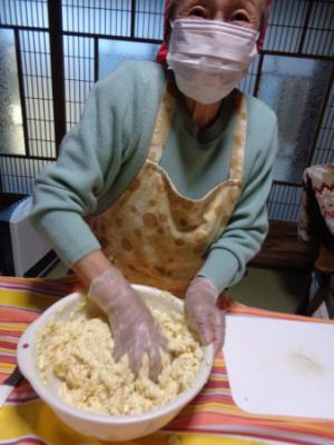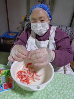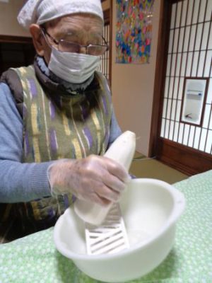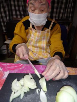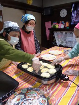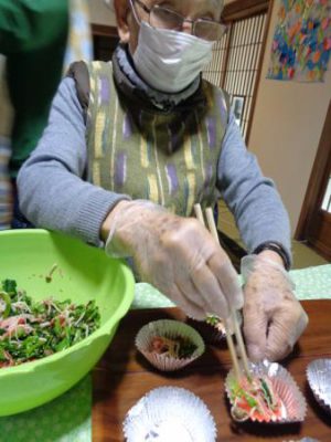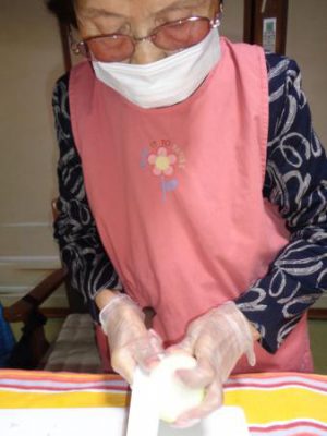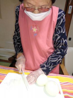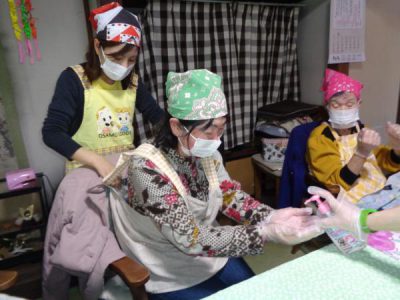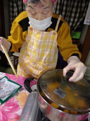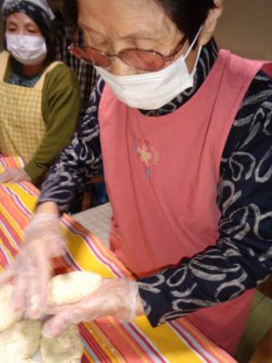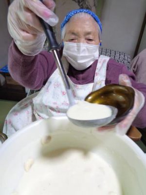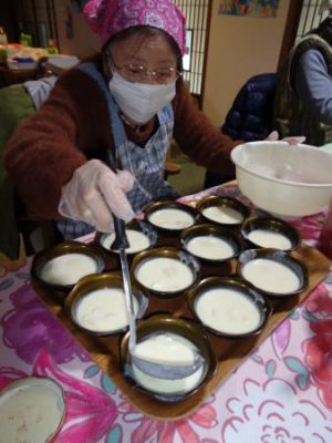 ヨーグルト担当の母たち 「盛り付けも大事ね