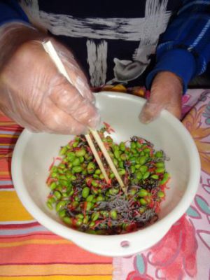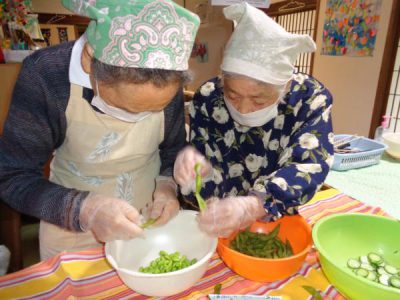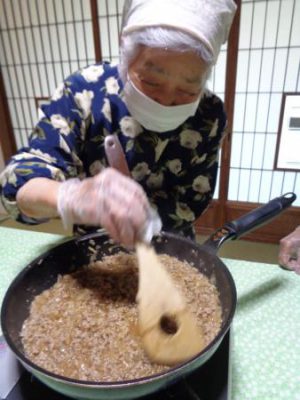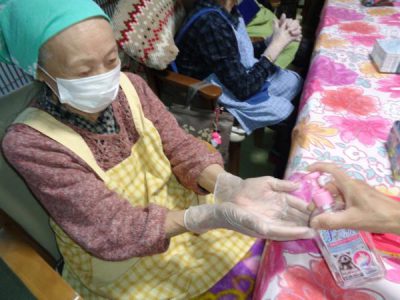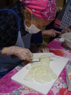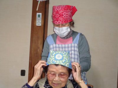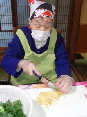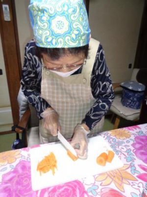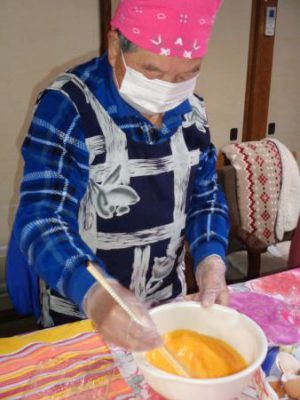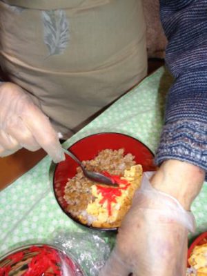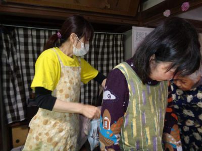 エプロン・三角巾・手袋・マスクをつけて・・・