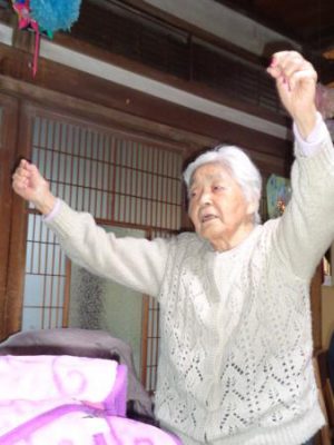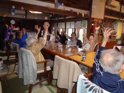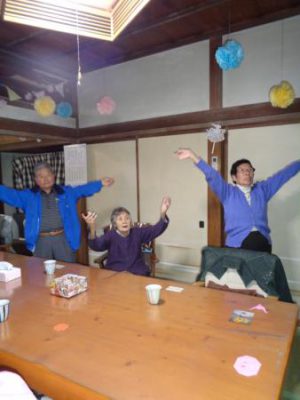 歌謡体操ではTV画面を見ながら元気よく