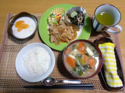 今日のメインメニューの生姜焼きです。