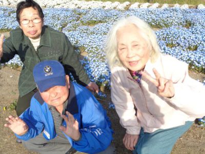 お花の前で記念撮影