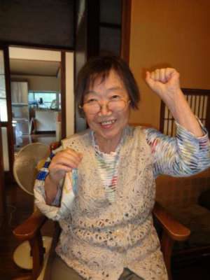 ガッツポーズの母うれしい顔  手 (チョキ)イェーーーーーイ手 (チョキ)