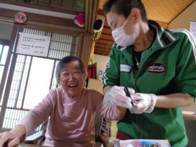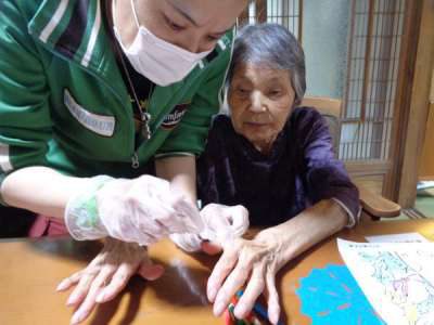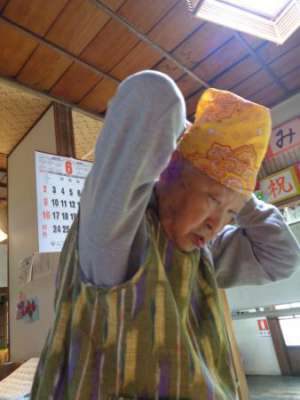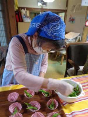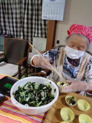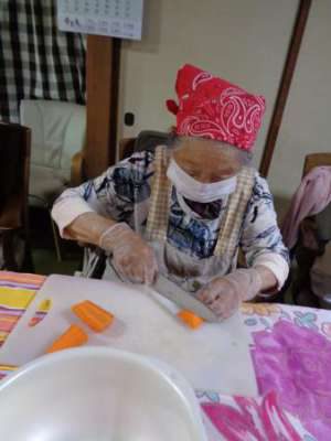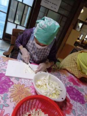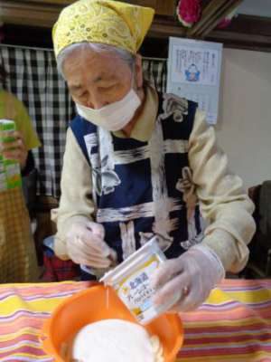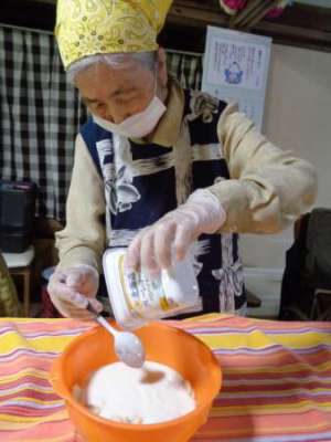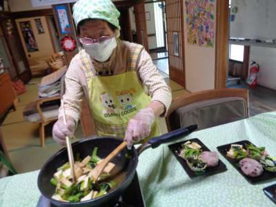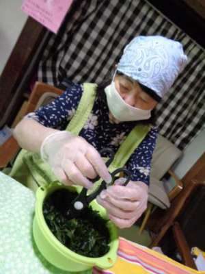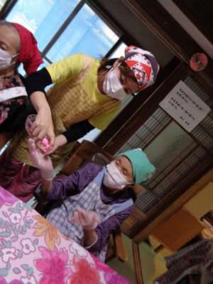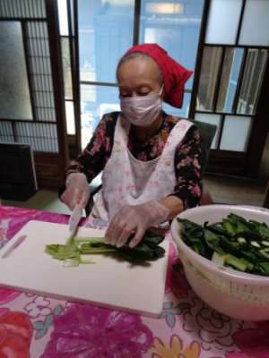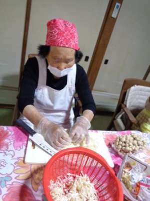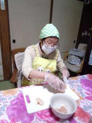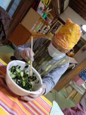 エプロン・三角巾に着替えマスク・手袋をつけて