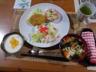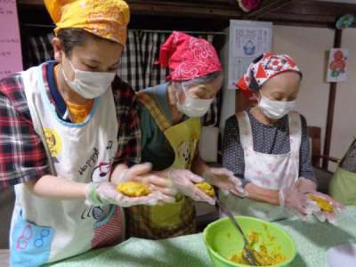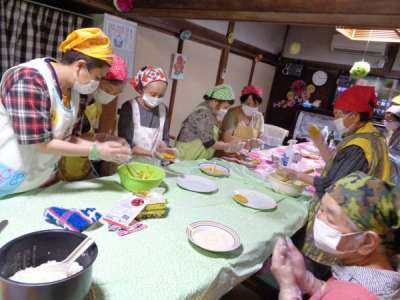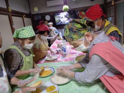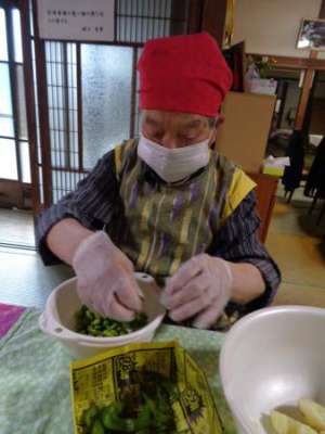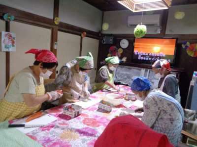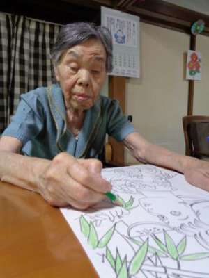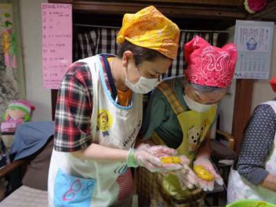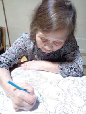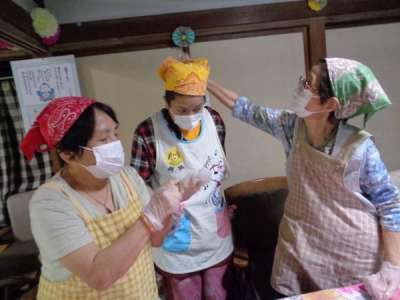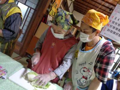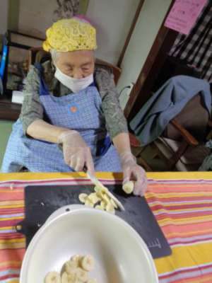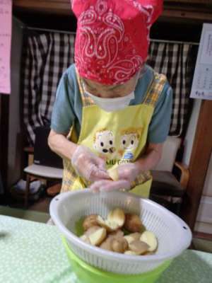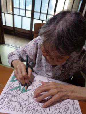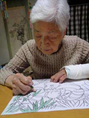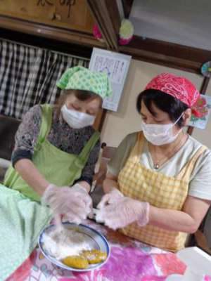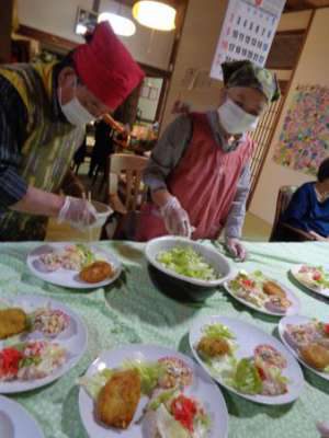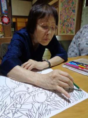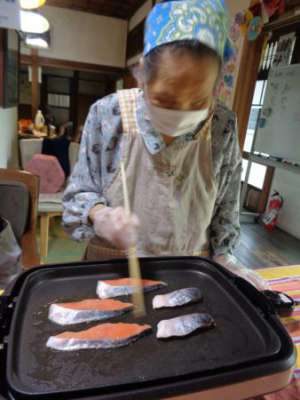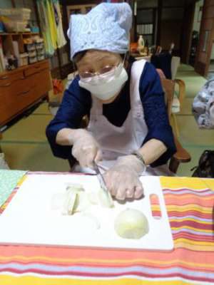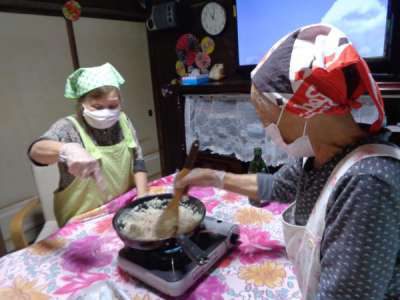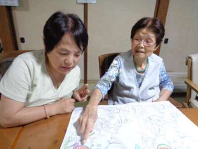 午前中のみんなでの調理、午後のみーんなでの塗り絵