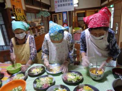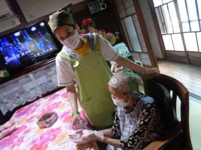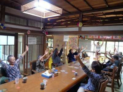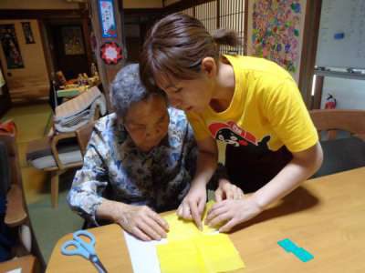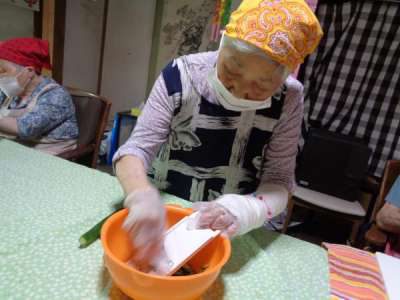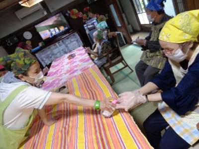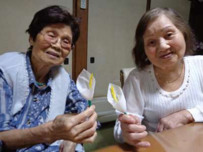 水芭蕉の壁画を皆さんで協力して作っていきます