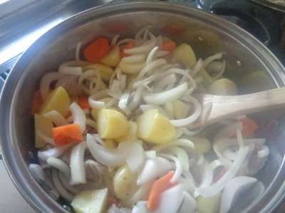 じゃがいも・人参・玉葱・豚肉を鍋に入れて・・・