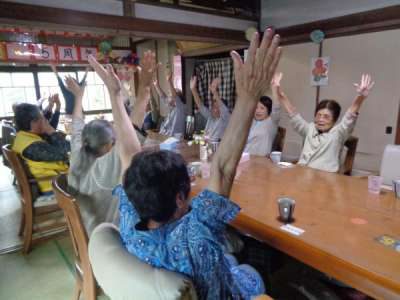 リズムに合わせて身体を動かしました