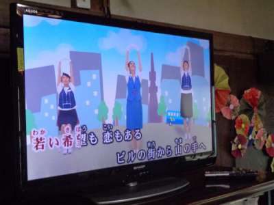 歌謡体操ではTV画面を見ながら📺