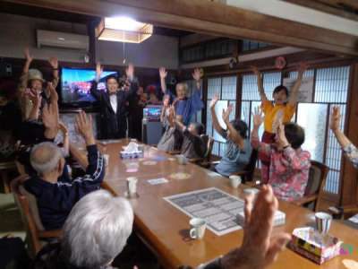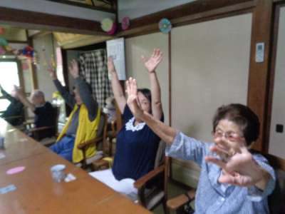 ぼけたらあかんの唱和や合唱、歌謡体操を